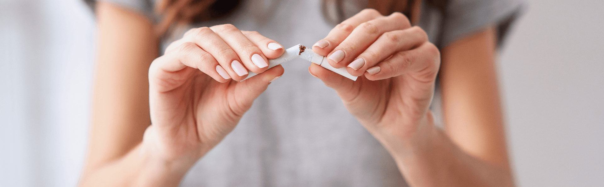 Frau zerbricht Zigarette in ihrer Hand und startet mit der Raucherentwöhnung in der Privatpraxis Kosttor.